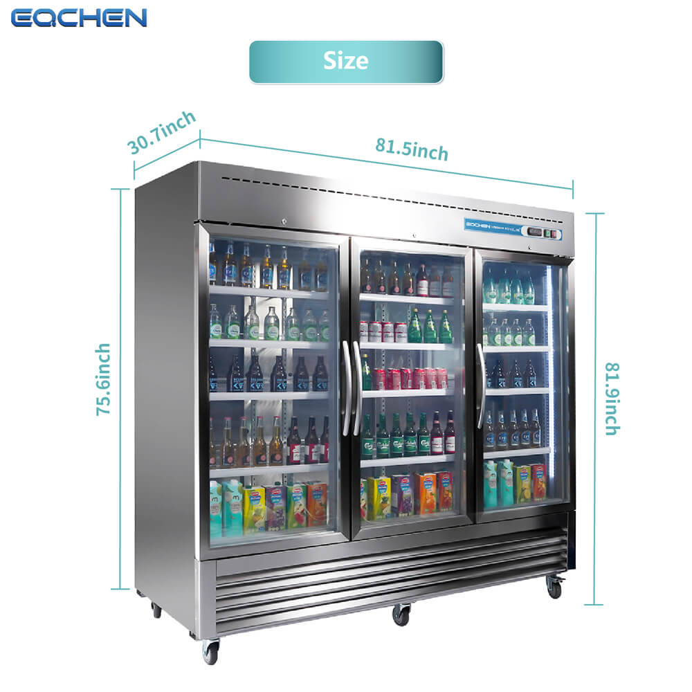 EQCHEN Commercial Glass Door Fridge, Glass Door Merchandiser Refrigerator with LED Lighting. Fast and Free Shipping, 6-year Warranty Compressor, 2-year Warranty Parts.
